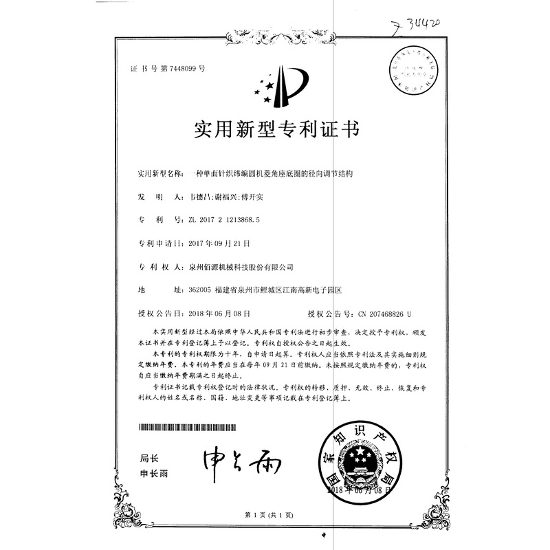 新型-一種單面針織緯編圓機菱角座底圈的徑向調(diào)節(jié)結構